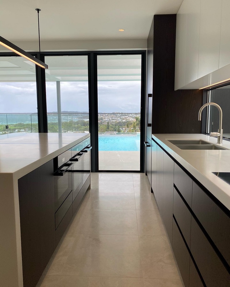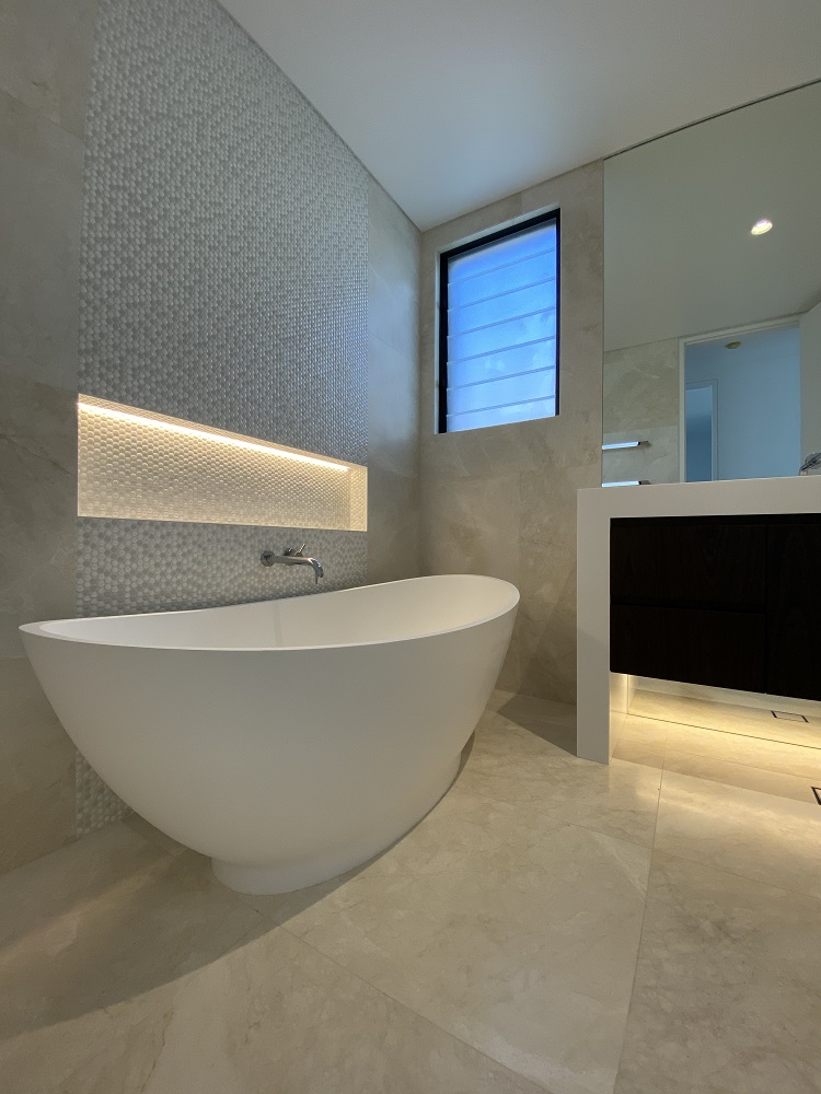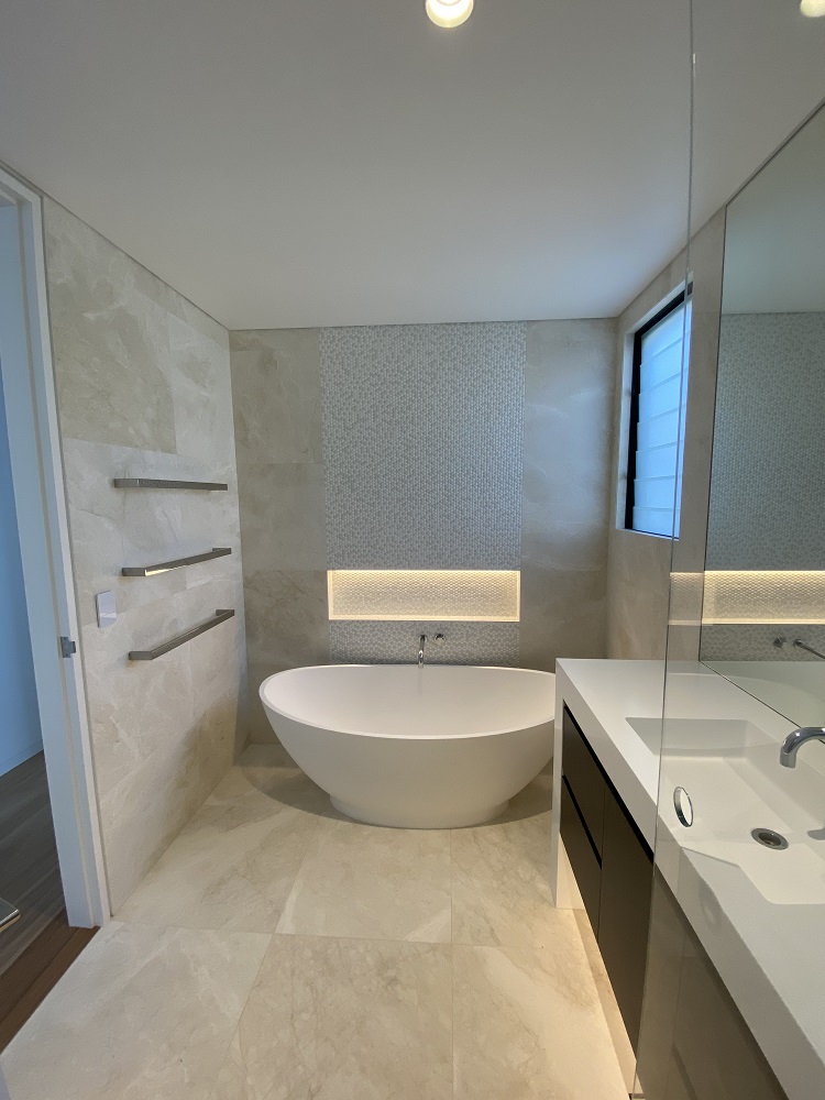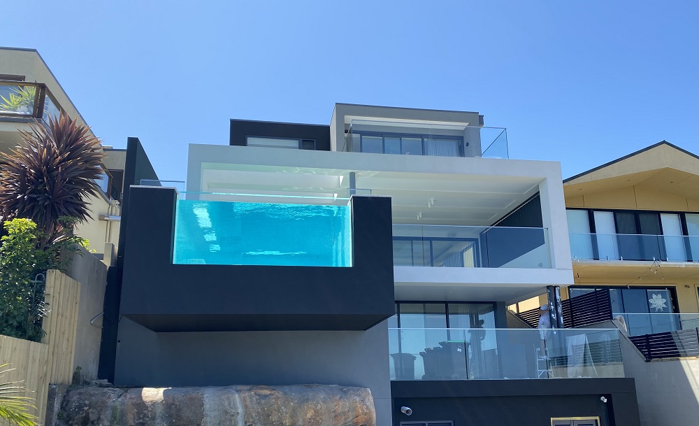 “The pool is constructed on the second-floor area of the residence to maximise the spectacular ocean views. Significant construction and access issues were required to be overcome with one third of the pool cantilevered and the remainder benched on a sandstone rock shell. Exceptional Tiling and paving were dually noted.”